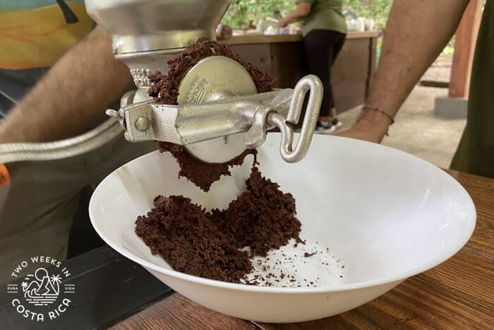 You’ll then move onto the chocolate station to learn how chocolate is made. Much of the tour is hands-on. You’ll have a chance to shell the dried cacao with a giant mortar and pestle and use a hand grinder to churn the beans into gooey chocolate.