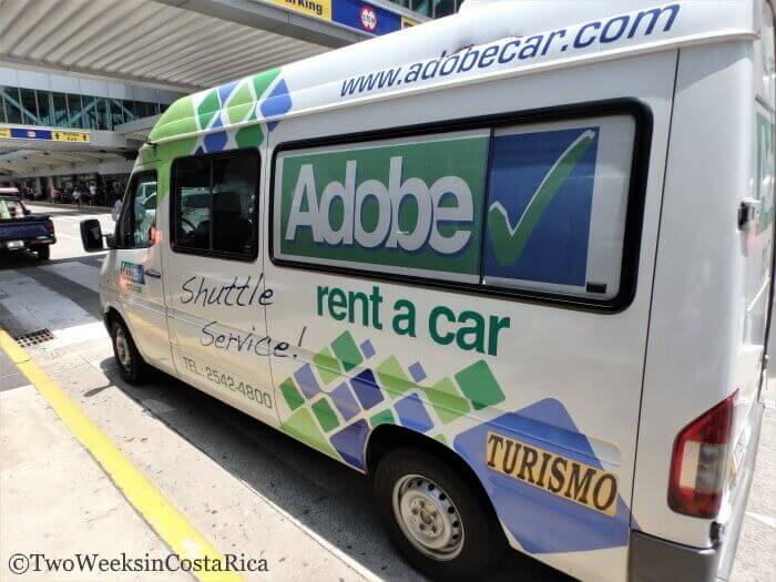 A: None of the rental companies have cars at the airport (at either San Jose or Liberia), but their offices are not far away. Include your flight details when making your reservation and they will be waiting outside the airport for you, holding an Adobe sign. They will then take you to their office in an air conditioned shuttle van a few miles down the road where you will pick up the car.