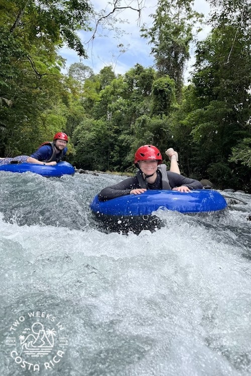Most of the tour is a relaxing float trip where you can take in the beautiful blue water and lush rainforest from an inflatable inner tube, but there are some small rapids for a little excitement (rapids are Class I-II). You tube about 4 km (2.5 miles) total.