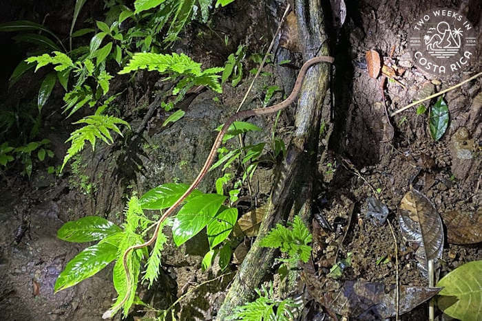 The night walk takes about 2 hours and is led by a bilingual, certified naturalist guide. During the walk, you may see bats, lizards, spiders, owls, snakes, and lots of interesting insects. The trail goes past a pond where it’s common to see frogs as well as rivers and waterfalls.