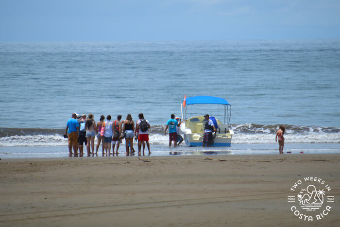 There is no dock or marina in Uvita so you will wade through the shallow ocean water to board the boat. The staff will help usher you on.