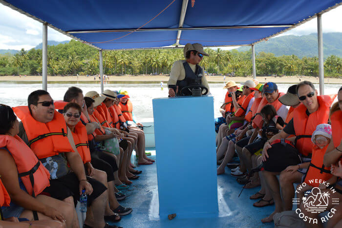 The boat leaves from Marino Ballena National Park in Uvita so you’ll get to see the famous Whale Tail and small islands offshore. The views are very pretty of the mountains and coast.