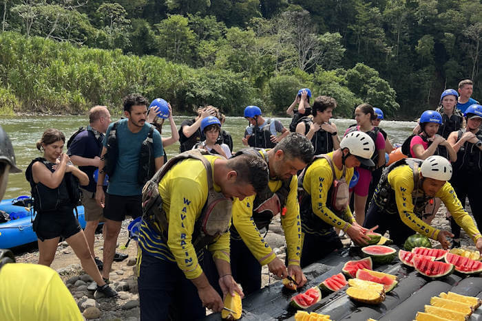 After about 40 minutes of adventure, you’ll be ready for a break. In perfect timing, the river gets very calm. You’ll stop on a sandbar for a refreshing swim, fresh fruit, and cold drinks.