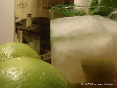 The Caipirinha, Brazil’s national cocktail, but often served in Costa Rica. It is delicious but not for the light of heart. The drink’s signature spirit, Cachaça, is 80 proof so it packs quite a punch. But it’s an easy drink to lighten up. Simply use less Cachaça or add some club soda in the final step.